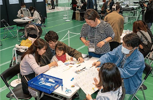 まずは会場のいろんな会社をたんけんして、「いたばしのすごい技術」を見つけよう!見つけた技術で、キミだけの「技術カード」を作るんだ。キミが作った技術カードと、東京大学がつくった最新技術のカードを組み合わせて、世界のピンチ(困ったこと)を救うアイデアを考えよう!キミのアイデアが、未来を変える!?