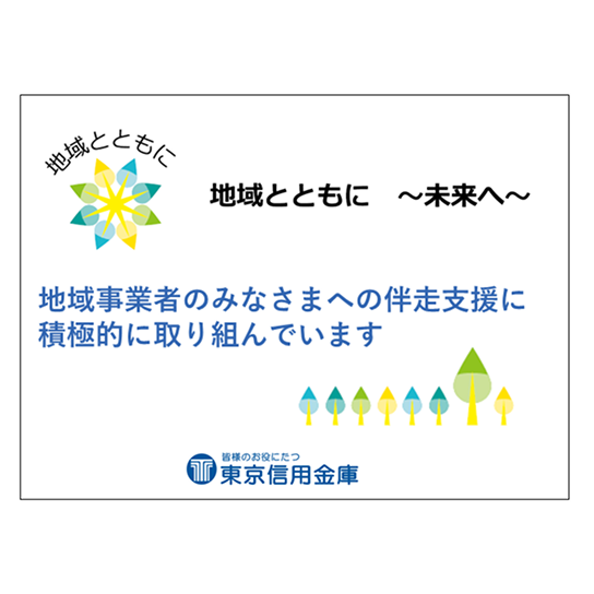 東京信用金庫は、「定期積金を中心とした営業活動」と「積極的かつ柔軟でスピーディーな融資対応」という2つのビジネスモデルを掲げ、業務を推進しています。また、地域事業者様の本業支援に積極的に取り組むことにより、地域とともに発展し、地域社会やお客様から、「最も身近で、最も頼りにされる金融機関」となることを目指し、役職員一致団結して業務に取り組んでまいります。地域の事業者様や起業をお考えの皆様を積極的に応援していますので、お気軽にご相談ください。